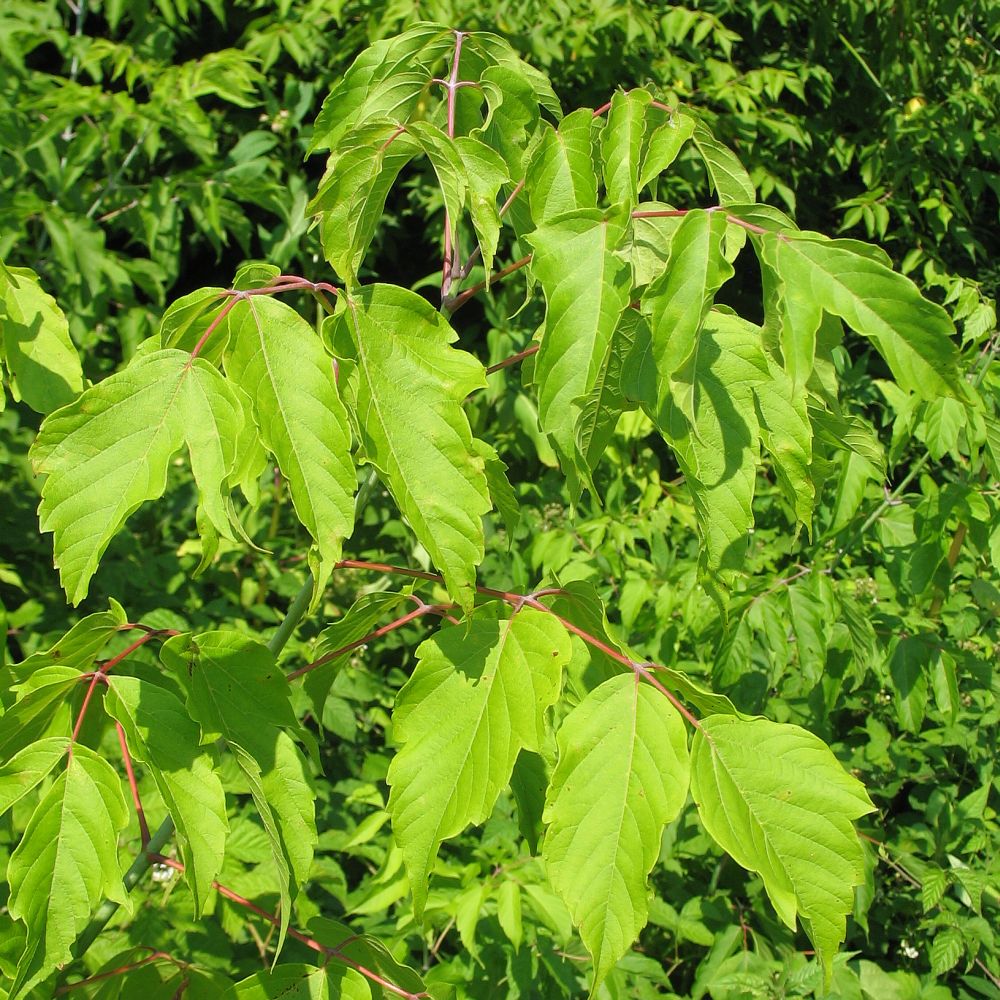 - Листья: крупные, пятилопастные, ярко-зеленые летом и золотисто-оранжевые осенью
